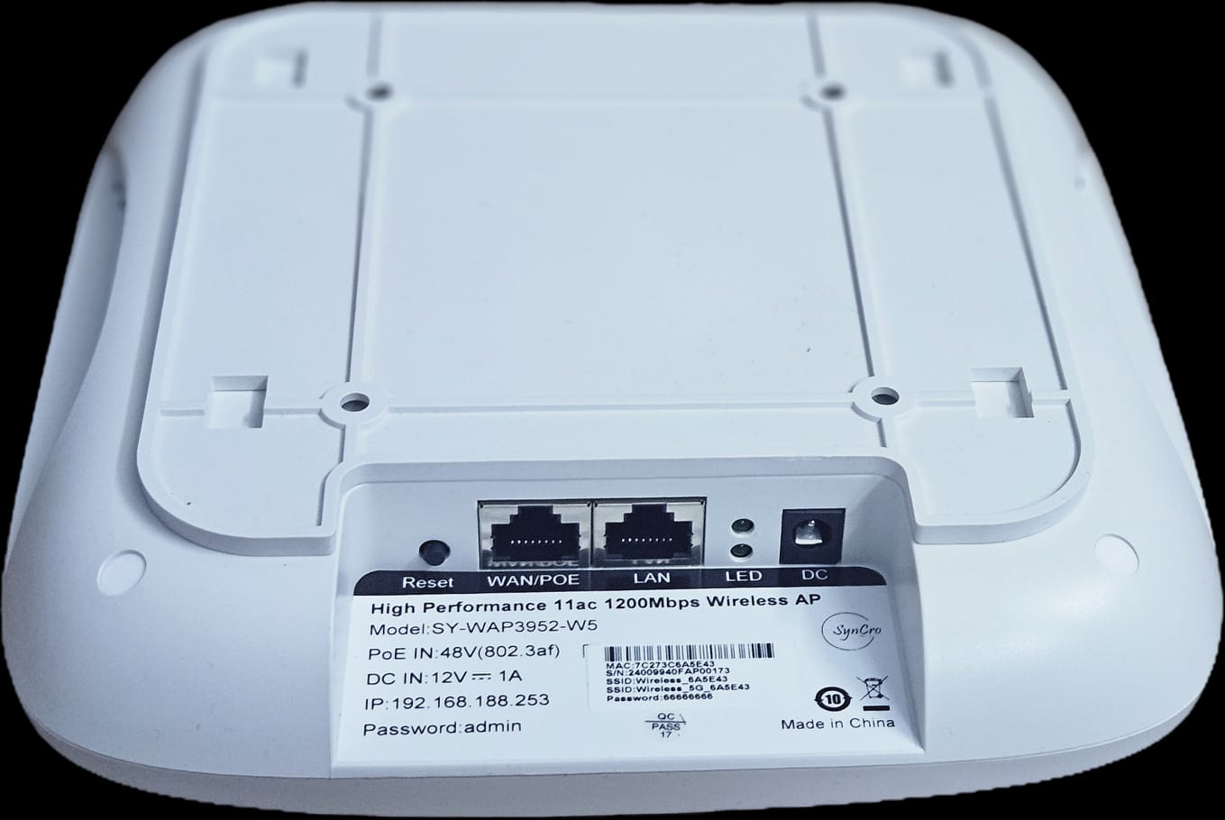 SY-WAP3952-W5 is an 11ac Wi-Fi standard high power Ceiling Wireless Access Point with MTK chipset supports WAVE2MU-MIMO, combined with 1200Mbps Wi-Fi speed over 2.4GHz(300Mbps) and 5GHz(900Mbps), make more than 80 end users can access into it. It is an economic option for hotel, school, restaurant or other.